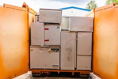 Haushaltsgroßgeräte werden schadstoffentfrachtet und anschließend einer Metallverwertung zugeführt.